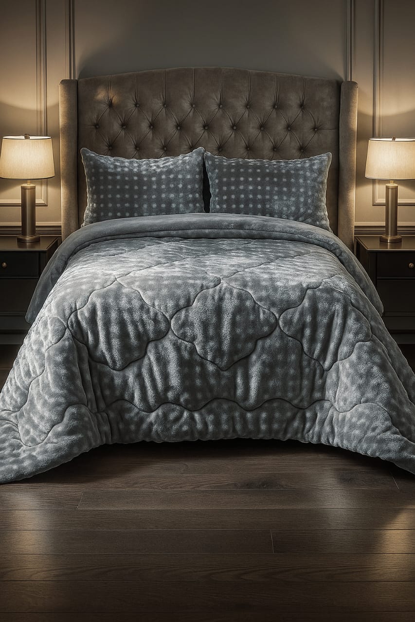 الخامة: بطانية فرو صناعي (Faux Fur) أو قطيفة (Velvet) ذات جودة عالية.